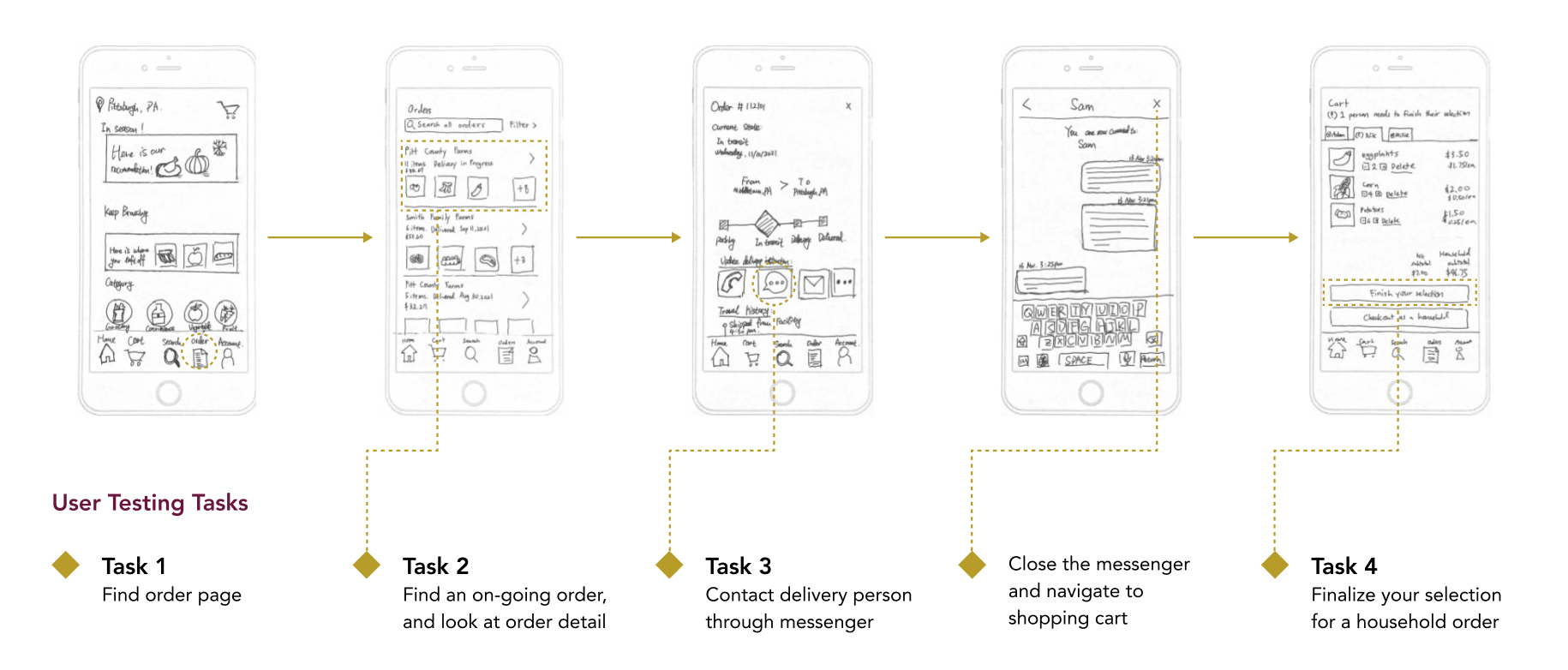 From the research findings, our team was able to discover which aspect of the service we could improve on and come up with a design solution that all of the stakeholders could potentially benefit from. The three key design decisions informed by the research insights are the Delivery Tracking and Communication system, “Keep browsing” section, and “Checkout as a household” feature.